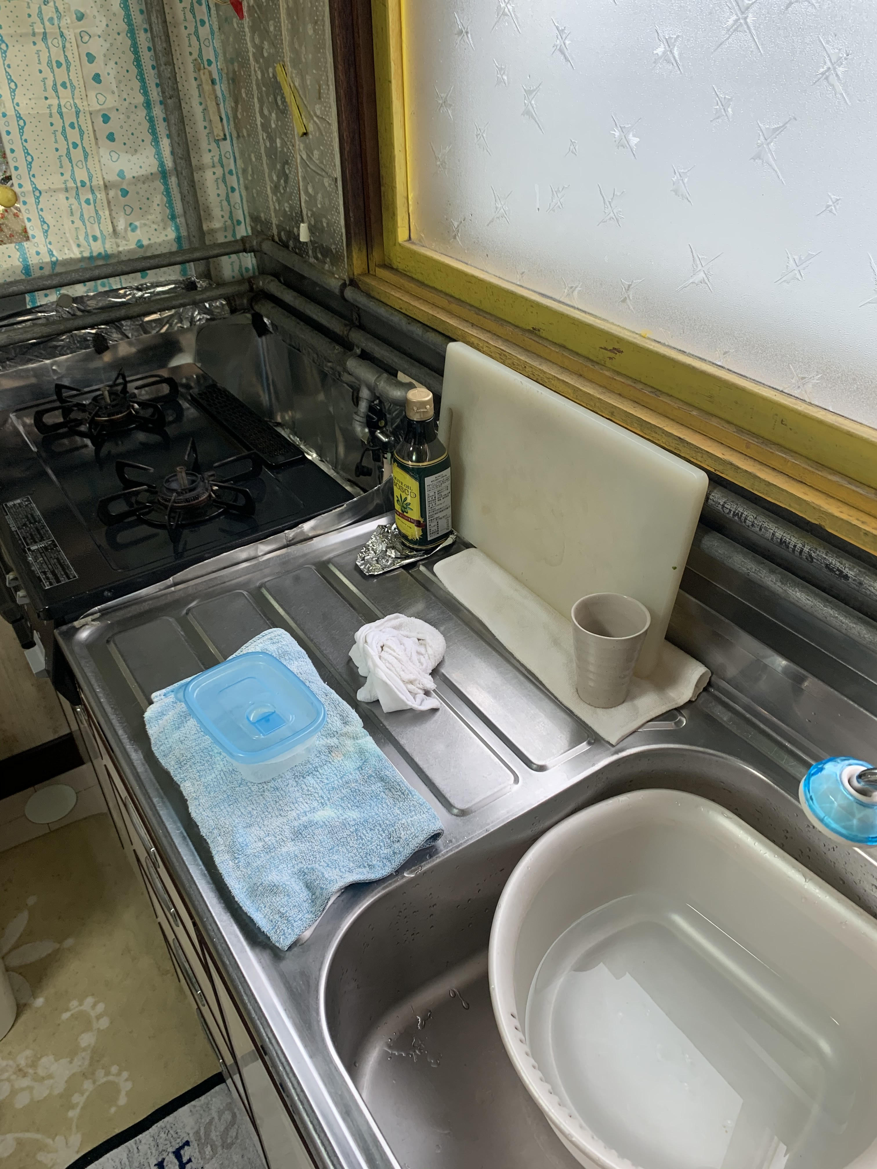 蛇口は昔ながらの単水栓で、水とお湯が分かれて設置されていました。