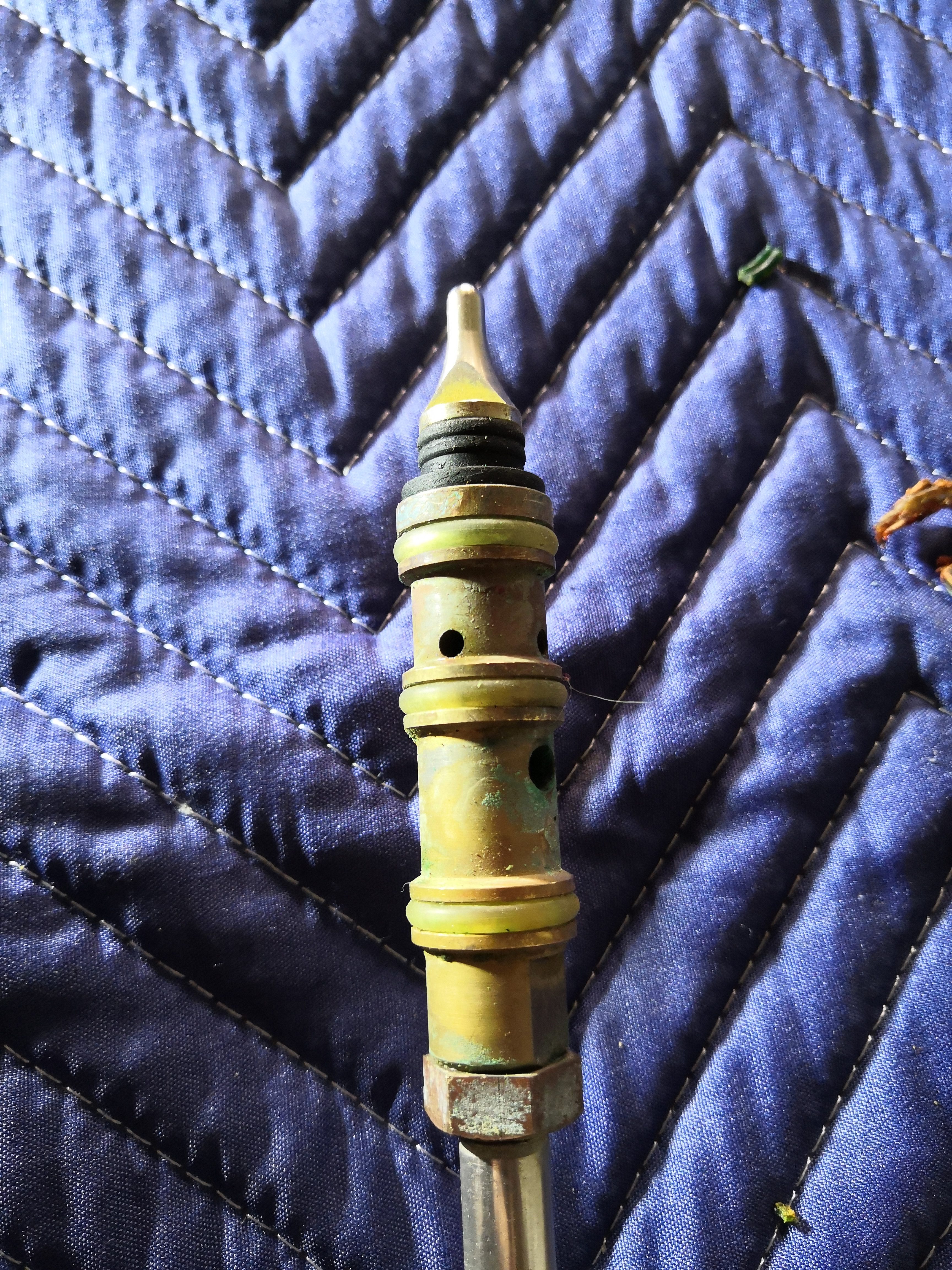 一度水道メーターで水を止水して、水抜き栓のシャフトを抜いたところ、パッキンがかなり劣化していたので、パッキンを交換して、通水させ水道メーターのパイロットもしっかり止まっているか、「シューシュー」と音がしていたのは止まったかなども確認し、お客様へ完了の報告しました。