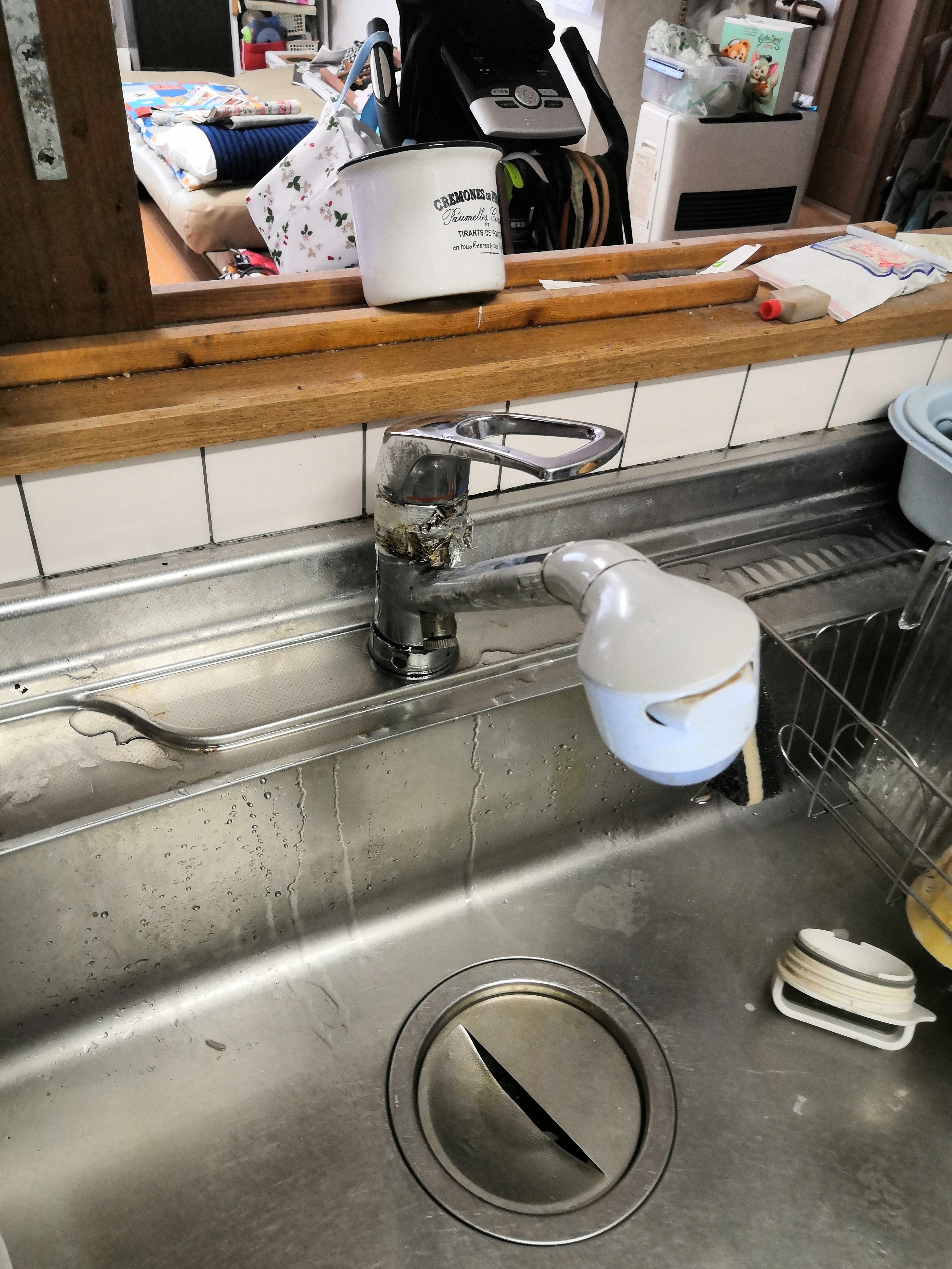 本日は、台所の蛇口から水が漏れるとお電話いただき、出動しました。