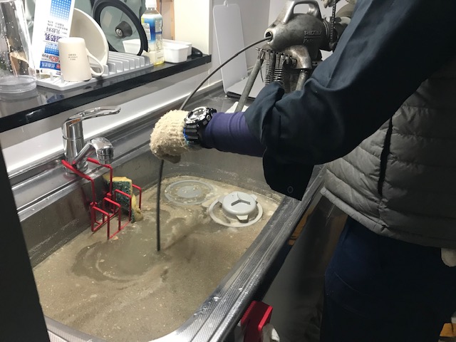 台所から高圧洗浄をかけておくと、油やらなにやらが混ざったものが詰まっていてかなり浮き出てきました。