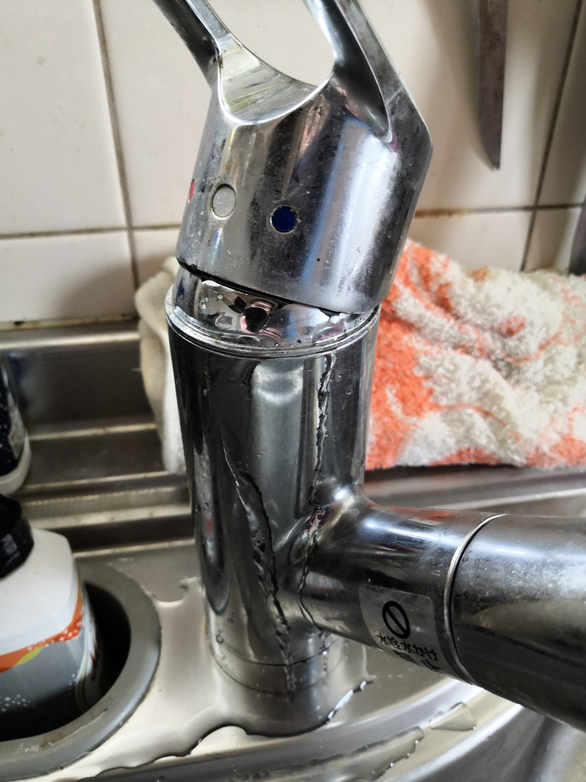 今回は凍結が原因だったみたいです。しばらく我慢していたみたいですが、段々と漏れる量が増えていき、お電話したとの事です(/_;)