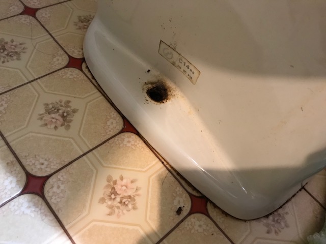 前々から便器を固定しているボルトがサビていたようですが、掃除をしていたらボロっと取れてしまったそうです。