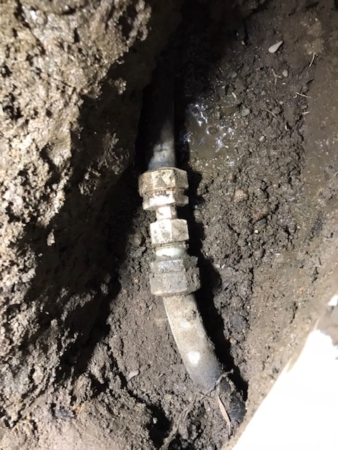 細かく調査して掘っていった結果、管との繋ぎ目で漏れているのを発見し、原因の継手を交換して症状は改善しました。