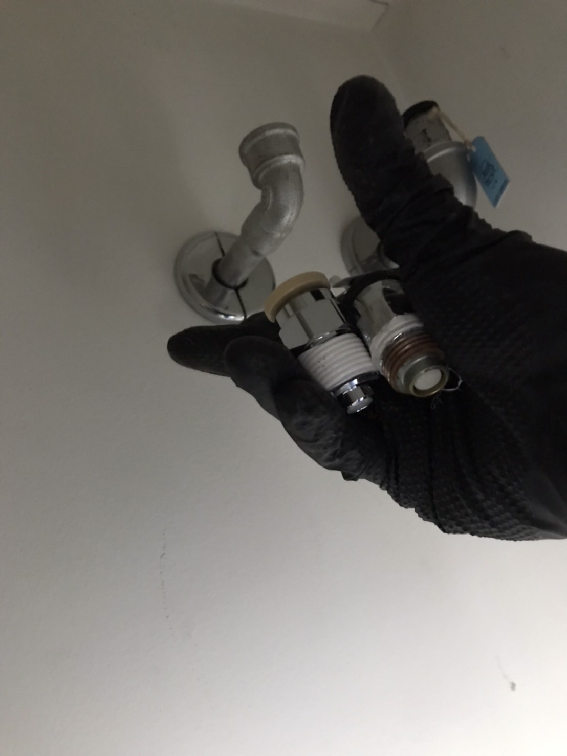 配管自体は壁の中に隠ぺいされていますが、壁から配管が飛び出ておりそこからの水漏れでした。