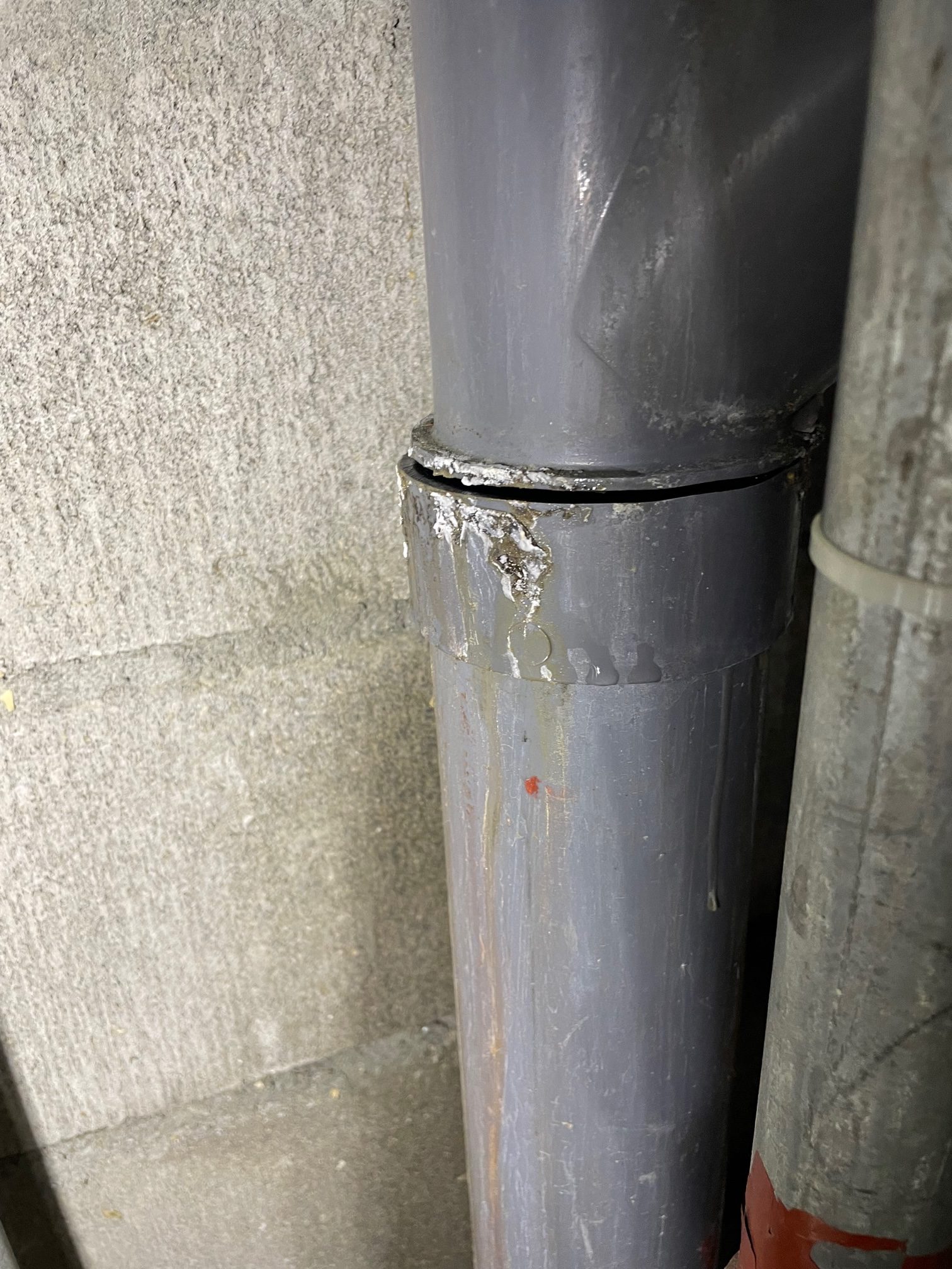 故障している箇所はパイプスペース内にある縦に伸びた排水管で、とある繋ぎ目が外れているとのことでした。