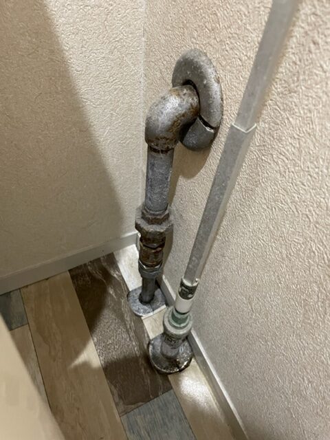 管理会社様より、ちょうど水抜き栓の立ち上がりの配管が腐食して水漏れしているとのことでした。