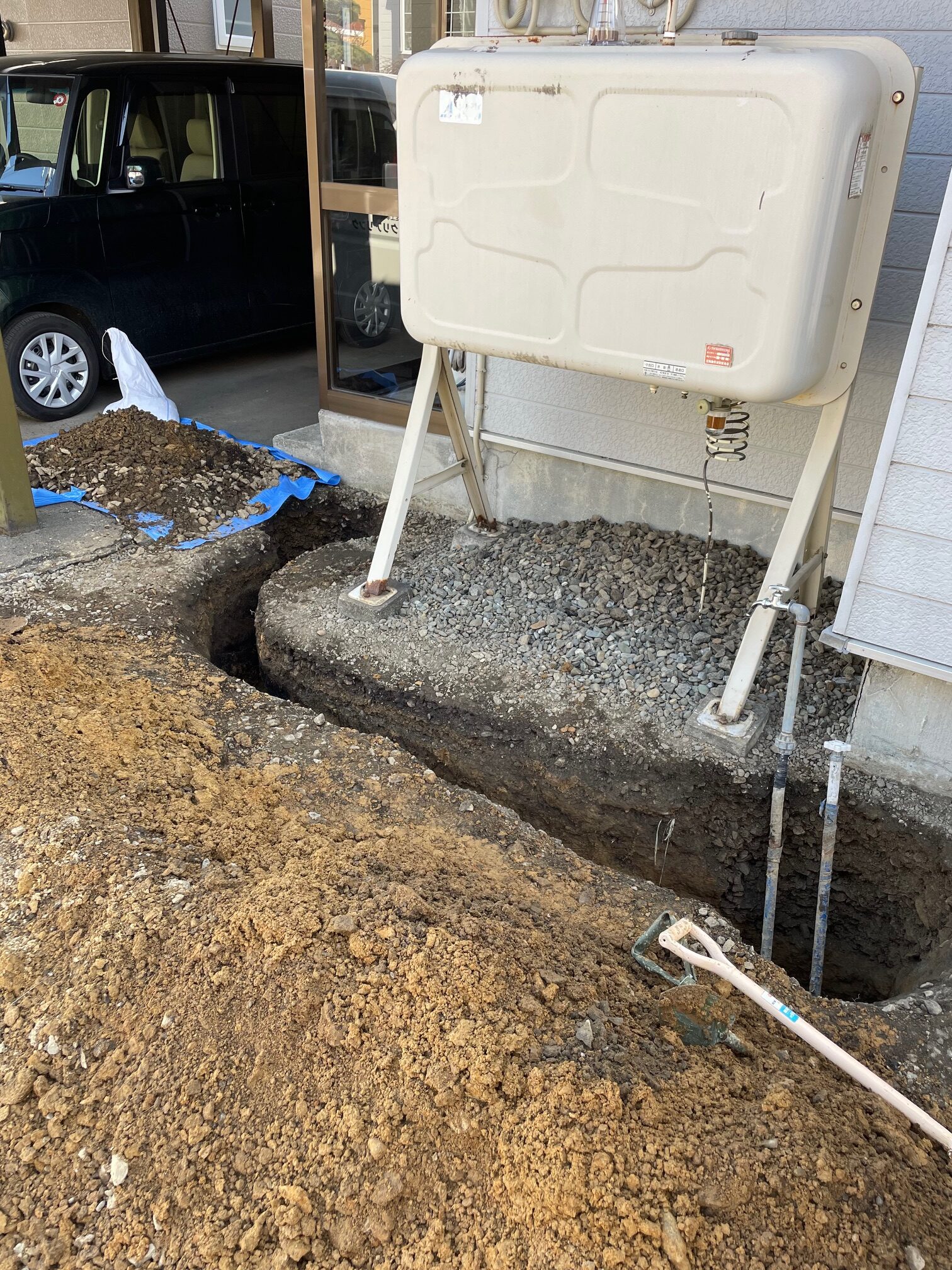 軒下まで穴を掘り新しく不凍水栓柱を取付させて頂きました。