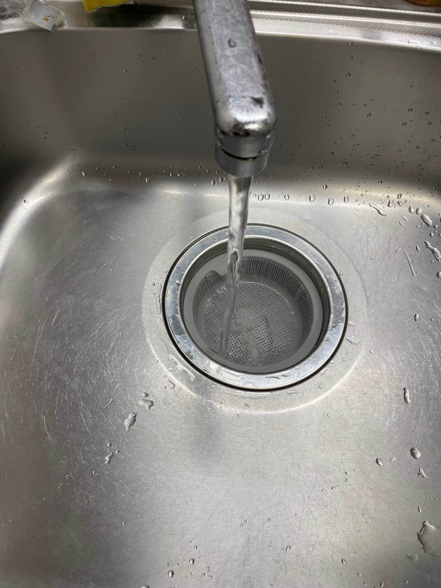 台所排水が時間をかけないと水が流れていかないとのこと。