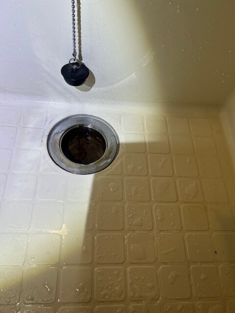 函館市旭岡町ー浴室の排水口から水を流すと溢れて浴槽から水が出てくるので見て欲しい・・・