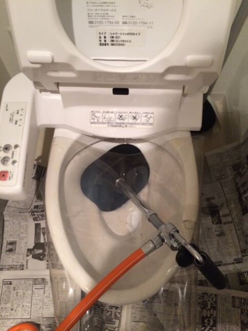 本日は、トイレが詰まっているとの入電。早速訪問し現状確認とお客様にいつ頃詰まったのかを聞いていると、2日前|д゚) なんも落してないとの事。お客様に今回は高圧のポンプを使用しての詰まり除去を提案いたしました。金額了承後、作業開始!なかなか難しい状態でしたが何とか3回目のポンプ作業で詰まりが解消致しました。お客様もお喜びでした(^^)/