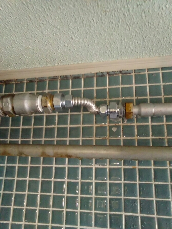 いて、そこから水漏れしている状態でした。通常は銅管で補修するんですが、S字になっていて接合は難しいのでフレキシブルという曲が