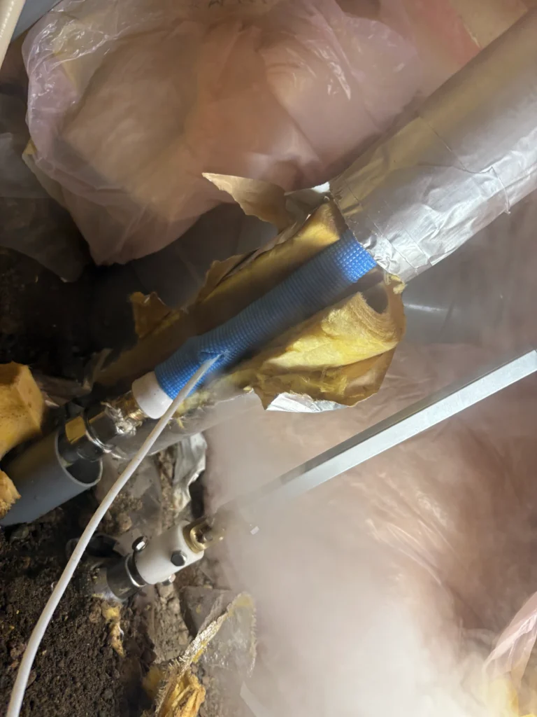 苫小牧市春日町にて、水がまったく出ないとのご依頼をいただきました。確認したところ、寒さによる配管の凍結が原因で、床下の配管が凍っている状態でした。床下にてスチーム解氷作業を行い、凍結を解消。作業後はすべての水回りで正常に水が出ることを確認し、問題なく使用できる状態へ復旧しています。
