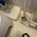 北斗市中央にお住まいのお客様より、「洗面化粧台の下あたりから水が出てくるので見てほしい」とのご依頼をいただきました。調査の結果、洗面化粧台下の接続部パッキンが劣化しており、水漏れが発生している状態でした。パッキンを交換し、水漏れは解消しました。