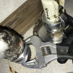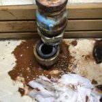 水漏れ箇所は水抜き栓のあるすぐ上の配管で、古い鉄管が使用されている部分でした。