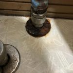 水漏れ箇所は、水抜き栓のあるすぐ横の立ち上がりという部分で、どうやら繋ぎ目の部分から水が染み出してきています。