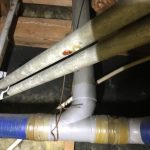 天井裏にある鉄管が腐食して水漏れしていたため、圧着ソケットと呼ばれる部品で止水作業をしました。作業前