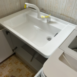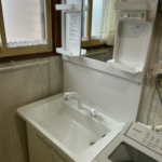 七飯町鳴川にお住いのお客様より、浴槽の水の流れが悪いとのご依頼をいただきました。調査の結果、20年以上使用されている設備でした。蛇口のみの交換も可能でしたが、化粧台本体交換をご希望され、お見積りをご提示のうえ本体交換を行いました。