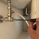 洗濯排水口の排水錆び詰まり排水口加工しトーラー作業で改善
