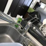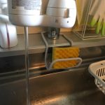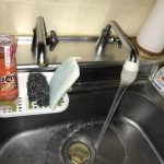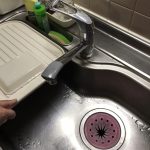 台所収納内から排水ホースを外し、落としてしまった異物もろもろを除去することで詰まりは解消しました。作業前