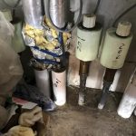 現場はアパートの一階部分で、二階の部屋の配管が伸びており、その途中からの水漏れでした。