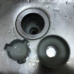 排水のトラップを外してみると、元々排水が小さいのに相まって、トラップ自体にヘドロのようなものが付着して水の流れを塞いでいました。