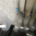 車庫内のスペースだけでの凍結でしたので、スチーム解氷をし、凍結は解消されました。作業前