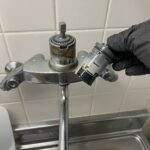 札幌市白石区東札幌にお住まいのお客様より、「キッチンの蛇口から水が漏れてくる」とのご依頼をいただきました。点検の結果、水栓内部のカートリッジが劣化しており、そこから水漏れが発生している状態でした。劣化したカートリッジを交換し、水漏れは解消しました。