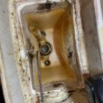 管理会社様より東区の物件の、トイレの水漏れのご依頼をいただきました。トイレタンク内に水が貯まらず、便器内に水が流れ続けているとのことです。トイレタンク内部部品の経年劣化による水漏れでした。ボールタップの交換をして改善しております。